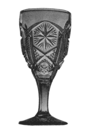 Advertised in 1961: TURN O' THE CENTURY Goblets and Compotes. "Olden, authentic "imitation cut" of the early 1900's pressed in the original moulds. Crystal and Colors. For table usage or to decorate picture windows, "what nots" or "hutches." It's the vogue to mix the various patterns in one table setting.