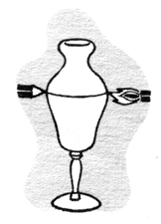 With all parts still red hot, the Foot Setter twirls the ware back and forth on his bench while using a wooden paddle to shape the foot.